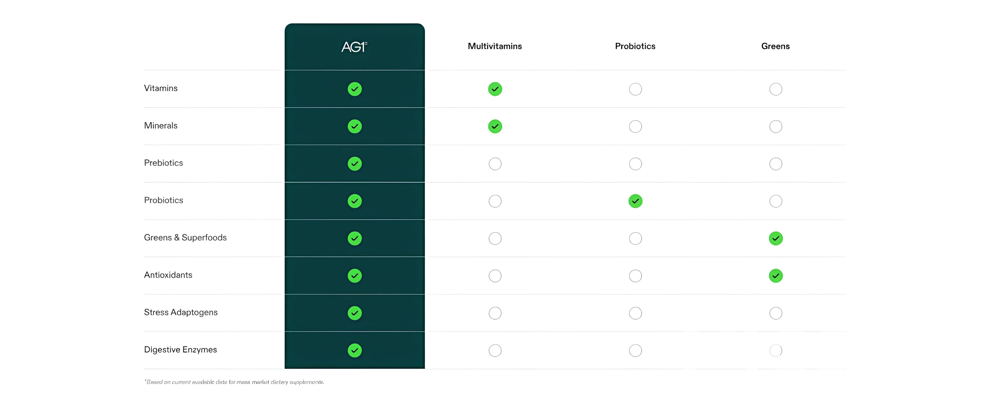 Even with the best diet, some nutrients can be hard to get. That’s why AG1 delivers optimal amounts of nutrients in forms that help your body thrive.*