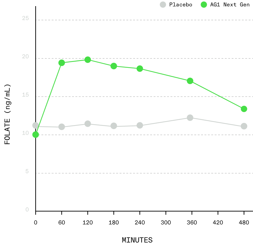 Folate levels were significantly increased within 30 minutes of drinking AG1 Next Gen.4